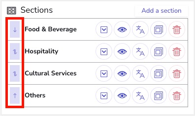 D. Once all the sections have been created, they will be ordered according to the order in which you have created them, but you can rearrange them manually if you need to, as shown below: