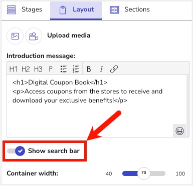If the directory presents a minimum of 10 businesses, you have the possibility to add a search engine to make it much easier for users to find a specific establishment. This option appears under the "Layout" tab: