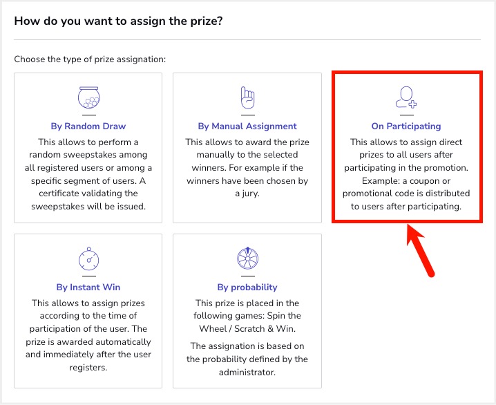 2. A popup window will open with the different types of prizes you can create, select “On Participating”: