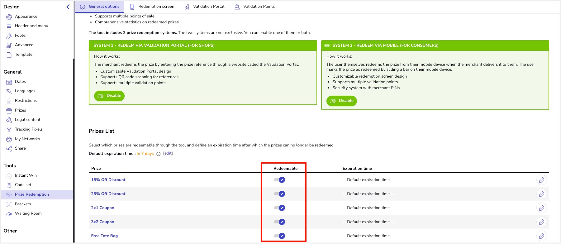 Skip ahead to Point 4 of this tutorial to learn more about the prize redemption tool.