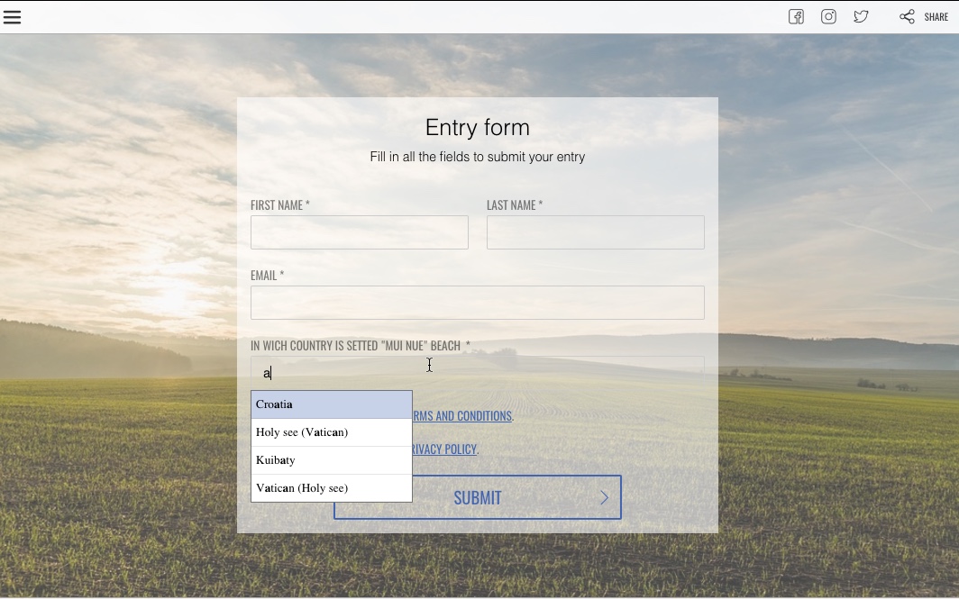 - Writing-based contest: The "Comments" field allows the user to write a text in order to enter the contest. The user can submit a text of up to 65,000 characters.