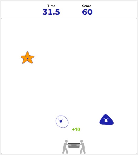 Falling Objects is an online skill game that involves catching the falling elements on the screen. As players catch the elements and while the game time lasts, they will accumulate points. The player must stay focused because agility is key. Besides the time limit, the game's difficulty also depends on the speed of the moving elements and whether negative elements that deduct points if catch have been included.