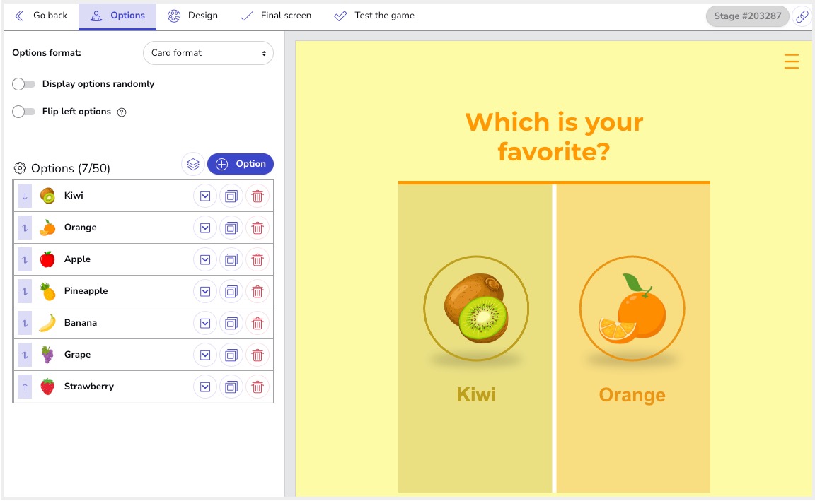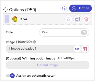 - Winning option image (Optional). You can upload a different image that will be shown when it is the final option chosen by the user.