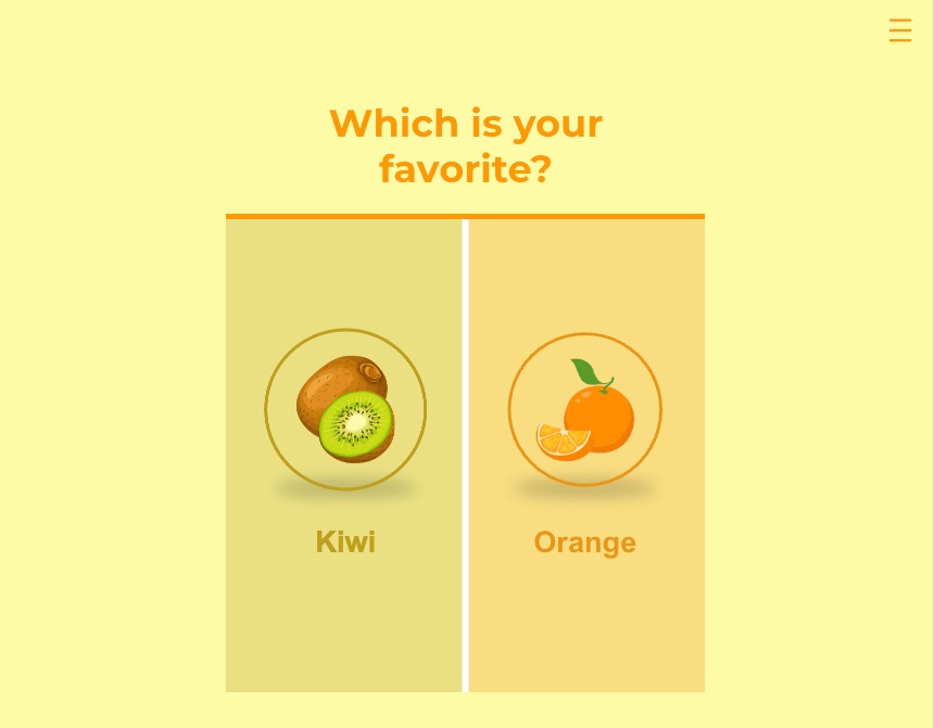 Page after selecting the favorite option. This is the page that the user will access after completing the game.