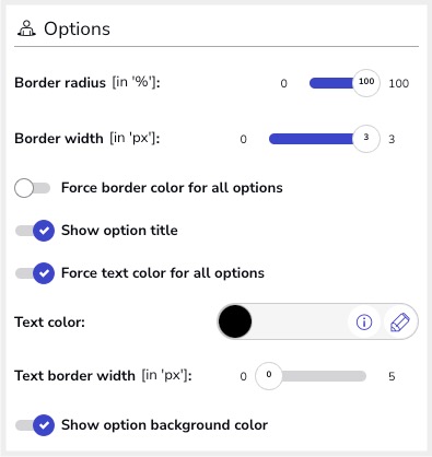 Under the “Options” tab, you will find the tools to customize the presentation and layout of the options that users will need to vote on. Specifically, you will be able to customize the following points: