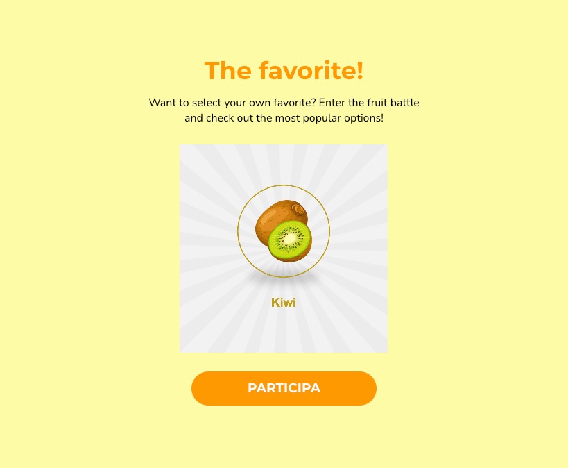 The "Face Off" promotion is a quick and simple choice quiz in which users must select their favorite option from several proposals presented on the screen. The goal is for the user to decide which of the two alternatives presented they prefer in each round. After choosing, the user can see the most popular option among all participants, to satisfy player's curiosity and add a touch of competition.