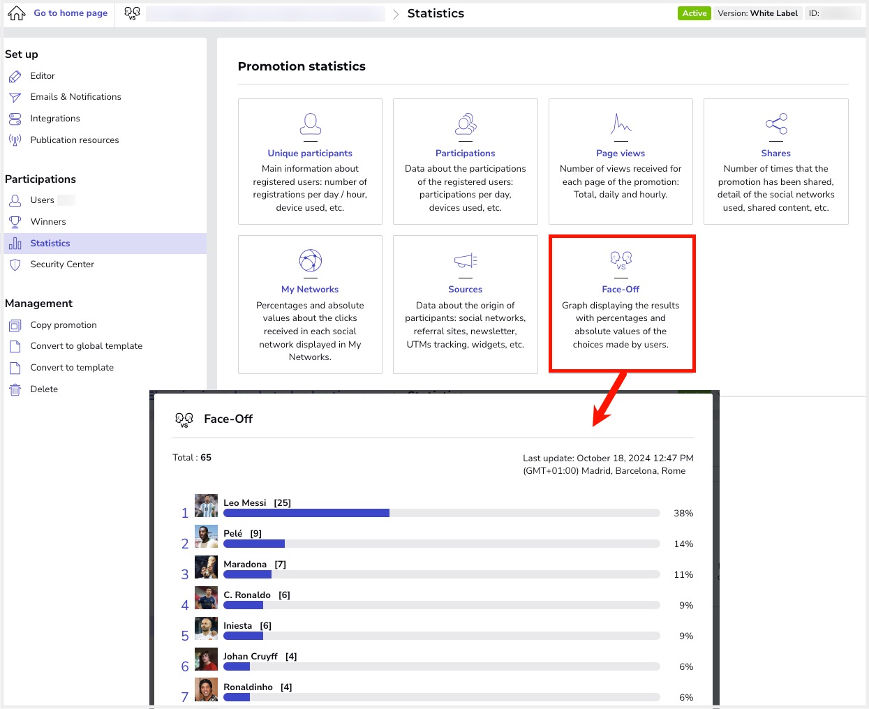 How do you start creating the Face Off promotion? In the following tutorial, we detail the first steps to create your promotion so you don’t miss any important points. You will learn about all the general management options available to you as an administrator to manage and edit the promotion.