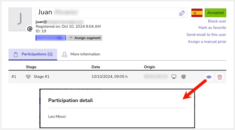 Additionally, from the Users list of the promotion, you will be able to:
