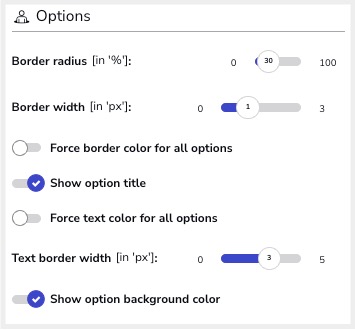 In the "Options" tab, you will find the tools to customize the presentation and design of the options that users will need to choose from. Specifically, you can customize the following points: