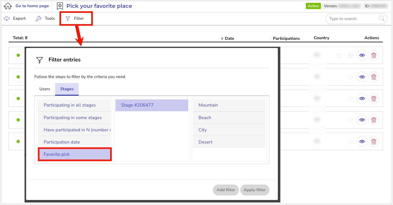 The administrator of the promotion will be able to check at any time which are the most popular options among users who participated in the promotion. There are two ways to view the options voted by users to work on the final report of the campaign.