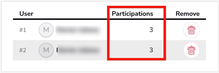 By default, the application will automatically assign each finalist one participation to enter the sweepstakes, but the administrator has the possibility to assign a number of additional entries, giving users who meet the requirements more chances to win the prize.