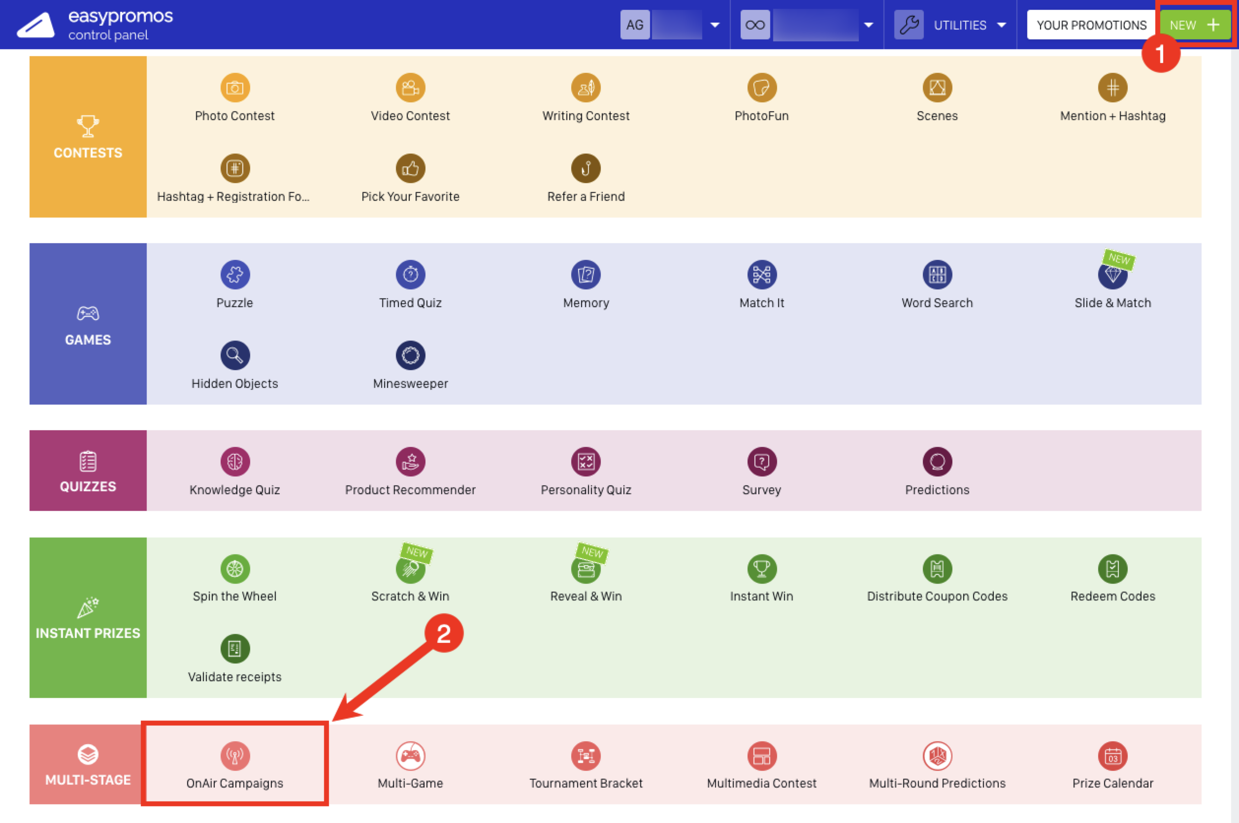 You can click the “Create a new promotion” button and under the Multi-stage section, select the "OnAir Campaign" option: