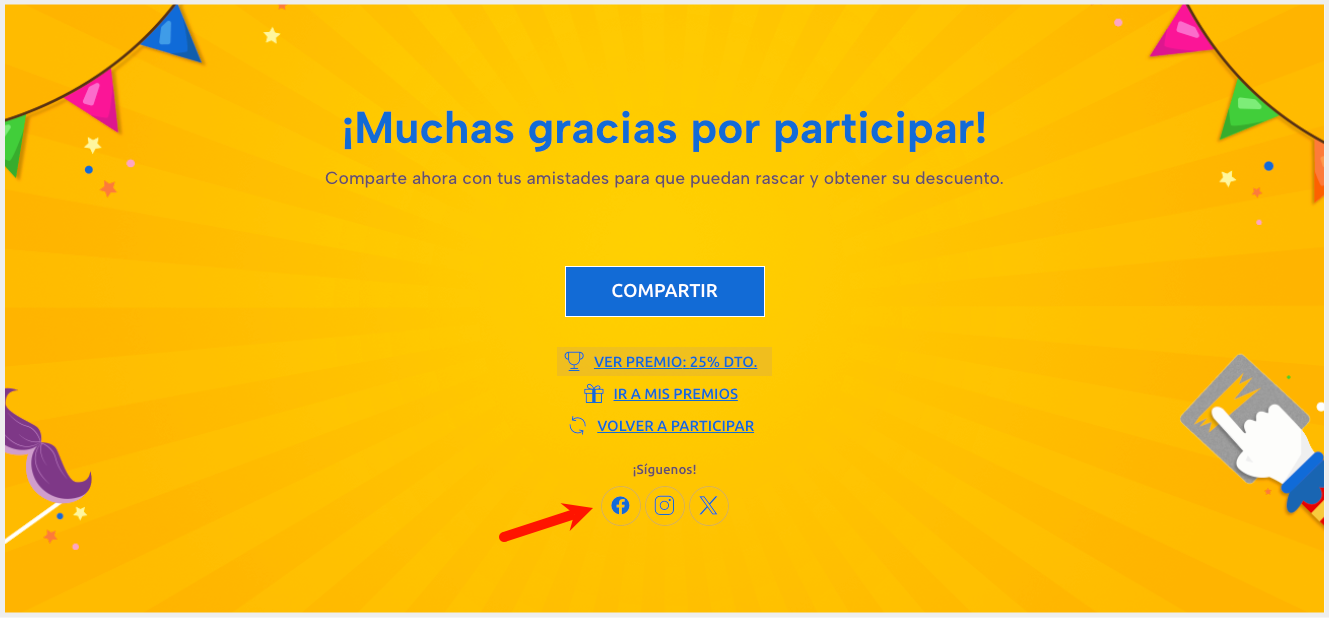 4. En la página de Muchas gracias. Si lo deseas, tienes la posibilidad también de mostrar los botones de las redes sociales en la página final de la promoción: