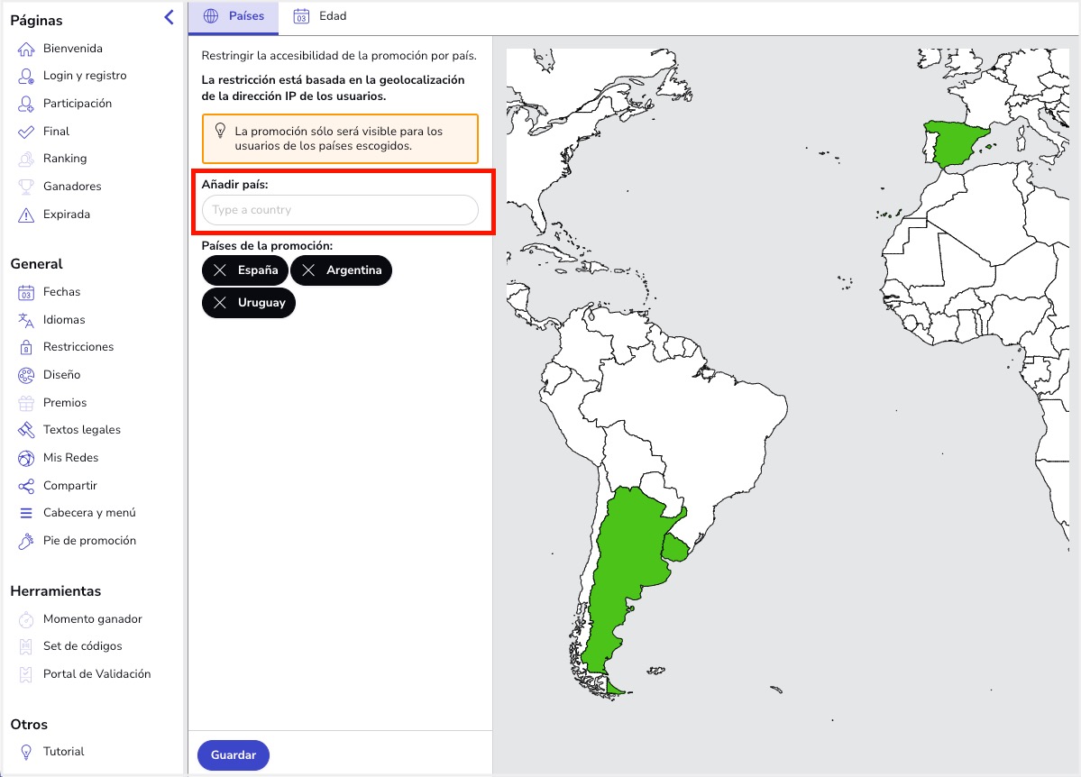 Publicación y Difusión - ¿Puedo filtrar la promoción por país? Seguir