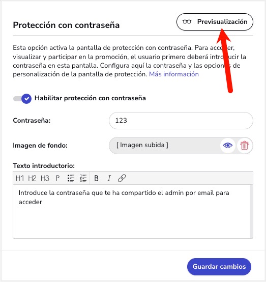 Nota: La funcionalidad de proteger la promoción con contraseña está disponible para las promociones creadas con la versión Premium y la Marca Blanca de la plataforma.