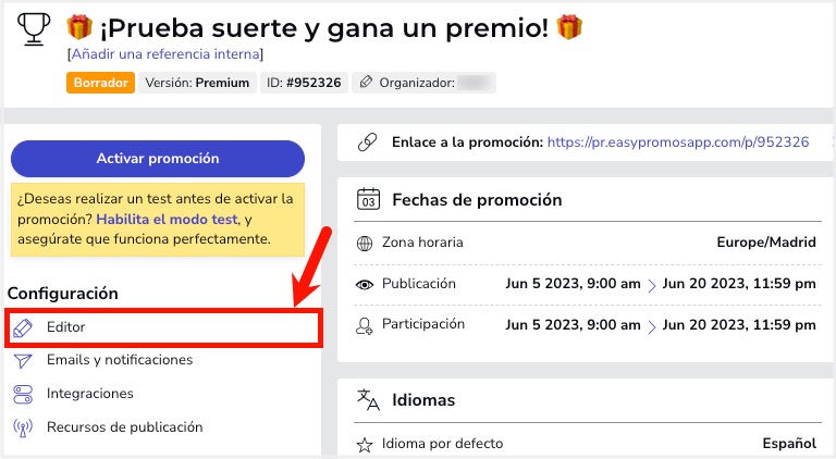 Como primer paso, haz clic en el icono del lápiz para configurar las propiedades de la participación: