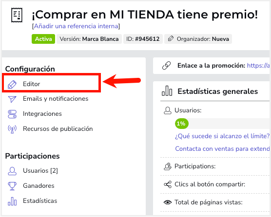 1. Haz clic en "Editor" del menú lateral: