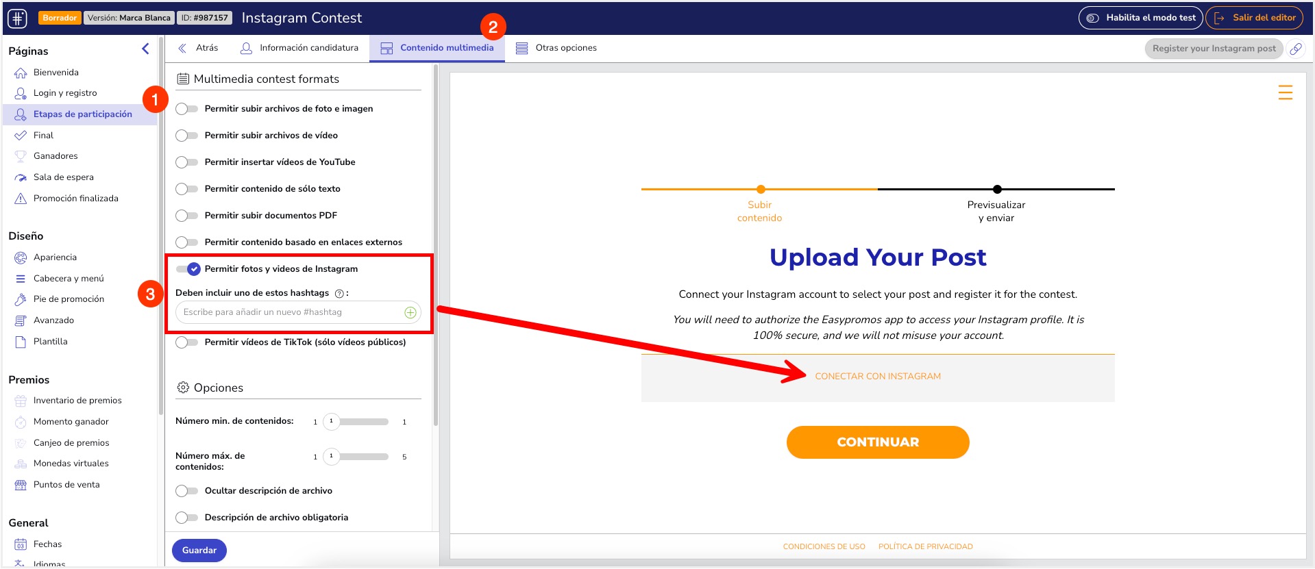 Los usuarios con perfiles públicos de Instagram podrán seguir participando en el concurso. El sistema para importar fotos, vídeos y reels público de forma automática no se verá afectado y seguirá funcionando como es habitual: los usuarios con perfil público deberán subir una foto, vídeo o reel mencionando a la marca e incluyendo el hashtag del concurso.