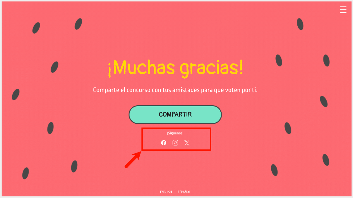 Con el objetivo de ayudar a dar más visibilidad a las redes sociales de la marca organizadora de la promoción, todas las nuevas promociones creadas incorporan la opción de mostrar el módulo "Mis Redes" en la página de final. De esta forma, en la página final de la promoción los usuarios verán los botones de las redes sociales que hayan sido configuradas en el apartado Editor > General > Mis Redes de la promoción.