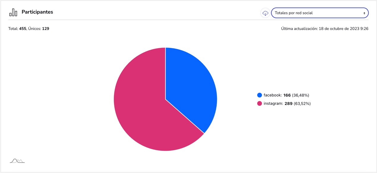 Además, también en el caso del Sorteo Multired, esta estadística permite obtener el número total de usuarios únicos registrados para cada red social y el porcentaje que representa respecto el total.