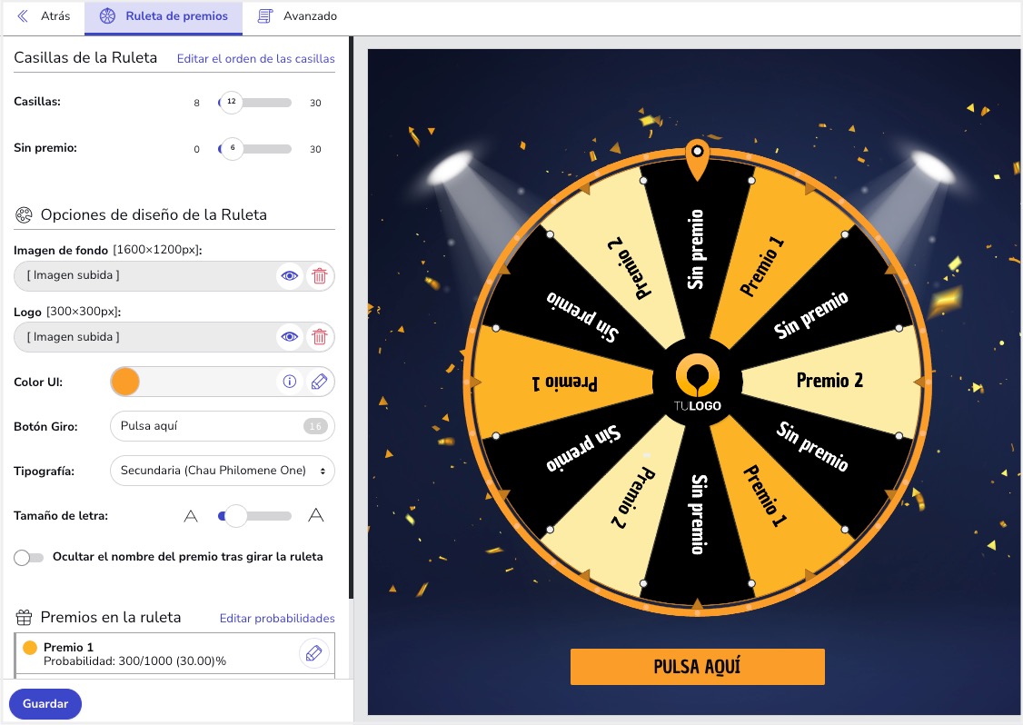 - Imagen de fondo. Sube una imagen de fondo para personalizar tu Ruleta de Premios.