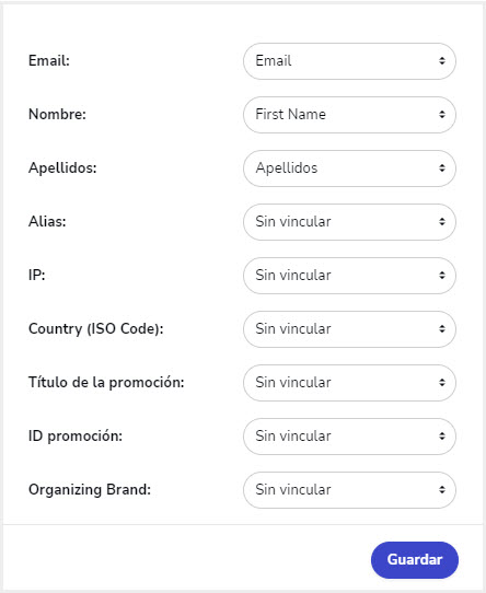 Nota: La integración solo importará nuevos usuarios que se registran en la promoción así que asegúrate de configurar la integración antes de lanzar la promoción.