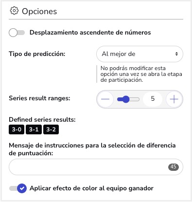Esta nueva modalidad te permitirá añadir un nuevo formato de predicción, basada en número de sets o victorias de una serie.